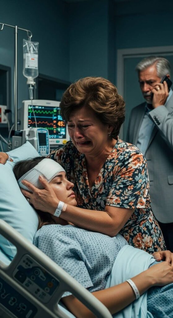 Inside the room, Karina’s good eye opened when they entered. “Mom… Dad.” Her split lip made speaking difficult. “I’m okay.”